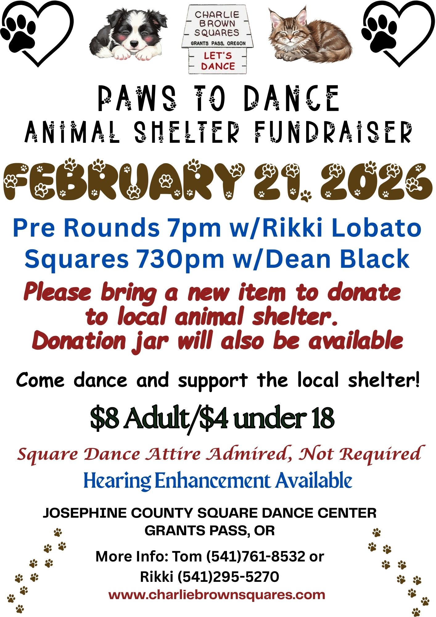 Our February dances include our Annual Super Bowl & Chili Cook Off dance on February 7th with Chuck & Rikki. On February 21st, we will Paws to Dance with Chuck & Rikki while we also hold a fundraiser for the local animal shelter by encouraging donations to help the shelter.