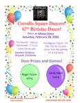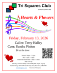 In February, we will not dance on Valentine's evening. Please join us on February 28 for our club's Birthday Party. Roger Putzler will call, and Sandy Harris will cue.