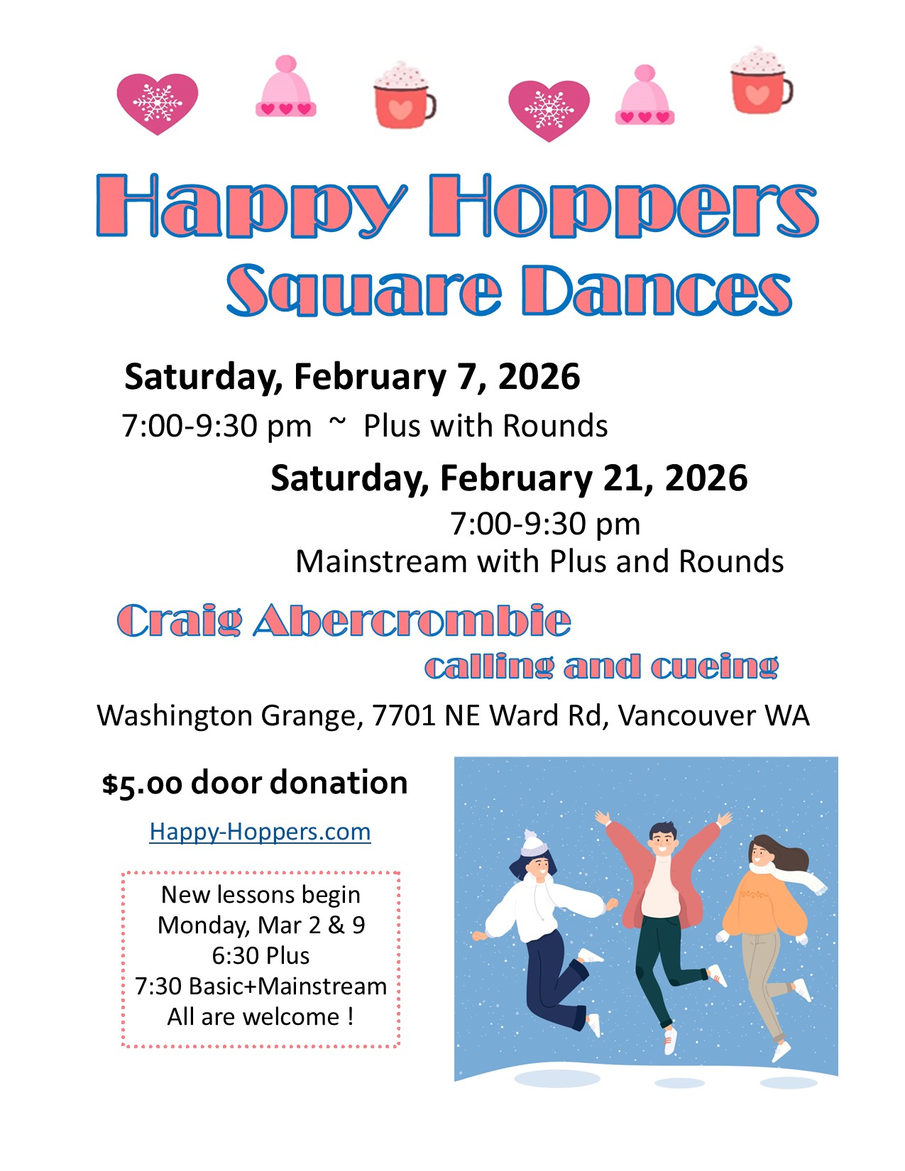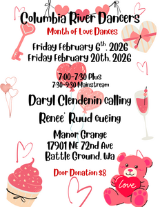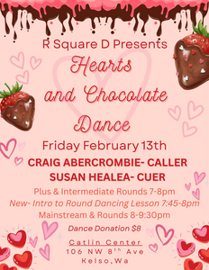 Our club looks forward to the "sweet" sounds of Craig Abercrombie calling and cueing our February 7 Plus dance and February 21 Mainstream dance with some Plus. Both dance times are 7:00-9:30 at Washington Grange #82 in Vancouver, WA. We love having visitors. Please come join our fun!