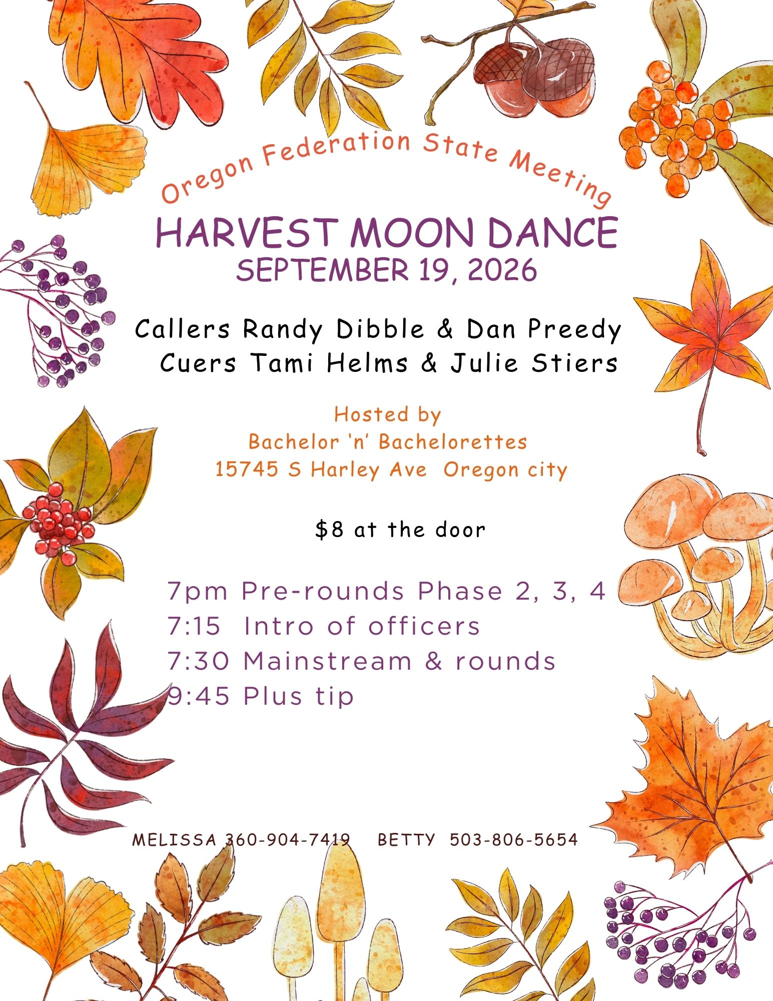Please call David Lajoie at 541-520-7311 if you wish to make sure we are dancing.