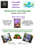 April 25th we will have a plant sale at the dance. It was a really popular event last year -- we will have a nice selection of plants at bargain prices. Come and join us for a fun dance, and take home some plants for your gardening pleasure. Roger Putzler will be calling, with Sandy Harris cueing.