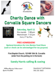 But don’t hang up your dancing shoes for long! Our Saturday, April 18th dance is still a go, with Scott Zinser returning to call and Connie Clark cueing. That should be a great night to gather the squares again.