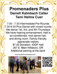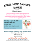 • Clubs’ April Plus dances are on the 2nd, 16th, 30th and the Mainstream dances are on the 4th and 18th.