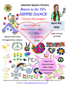 Other upcoming special dances include our St. Patty’s Dance on March 21st, and our ever-popular Hippie Dance April 4th. We are also planning our first Club Yard Sale April 23rd through 25th. Otherwise, our regular program has us dancing every first and third Saturday, starting at 6:30pm with Plus, Pre-Rounds at 6:45pm and Mainstream from 7:00pm to 9:30pm (every 3rd tip Plus). For details, please visit: www.lebanonsquarecirclers.com.