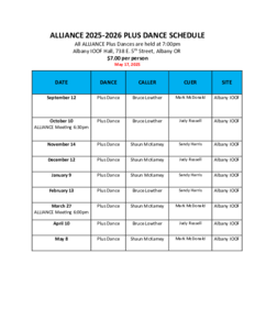 Please call David Lajoie at 541-520-7311 if you wish to make sure we are dancing.