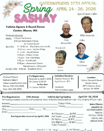 Hope to see you in Yakima at the Spring Sashay. See you there in a square.
