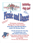 Our Annual Picnic is Saturday, August 27th at Island Park in Springfield. It will be in the south shelter from 10:00 to 2:00. Everyone is invited to each of these events. Hope you can make it and bring a potluck dish to share. Bring your own plates, utensils, and beverages. We will have music and some dancing.