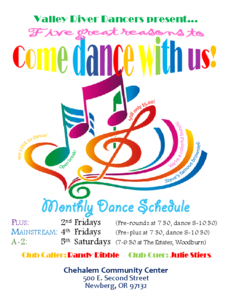 July also brings us a 5th Friday so we'll be dancing A2 at The Estates Auditorium in Woodburn starting at 7:30.