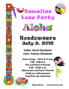 Mark your calendars: August 26 is our mainstream Luau Dance from 7:30 - 10:30 at Chehalem Community Center, 2nd and Howard, in Newberg.