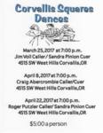 Winter even allowed us to go to Albany for the Mid-winter festival and dance to the Mike Seastrom and Hunter Keller as well as several of our caller friends such as our own Mike Halley. Those who enjoy the round dance were entertained by the cuing of Sharon and Casey Parker plus our cuer friends such as the Oaky Doaks’ cuer Helen Halley.