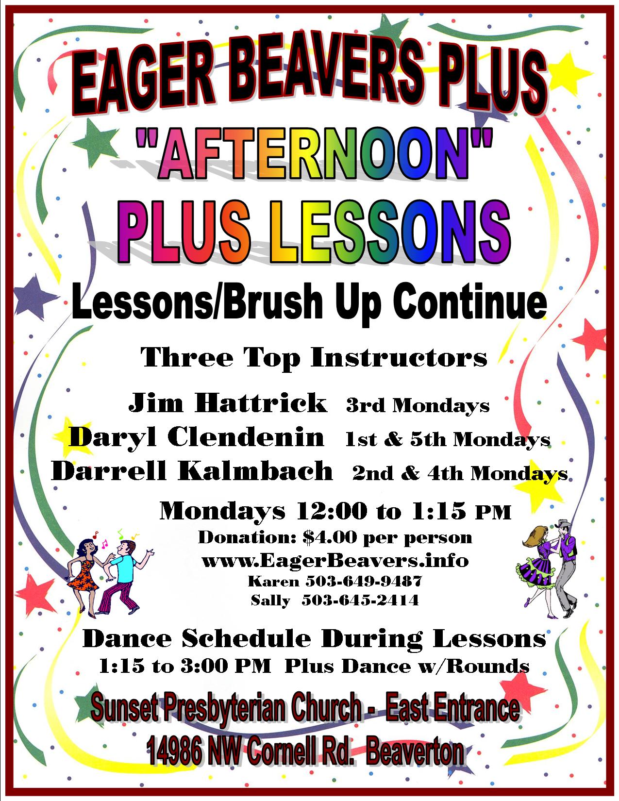 Our Plus Lessons are continuing. Now is a good time to join in and brush up on your plus. I have danced for years but I find something new to me at the classes. Class time is 12:00 to 1:15 p.m. For $4 you get a good workout.