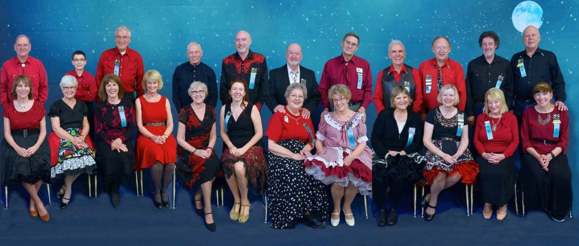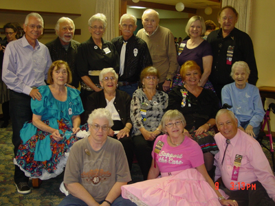 January 27th thru 29th was the 2017 Shootin’ for the Moon Mid-Winter Festival. This weekend is one of the Hoedowner’s favorites for dancing and social activities. 49 Hoedowners attended part or all of the weekend and I hope I didn’t forget anyone. We kicked off the weekend with dinner Friday night, dancing and a post-party at the Hoedowner Hideaway. Saturday morning the dance floor called our names with side excursions to the Carousal Museum and Hobby Lobby. Saturday evening with dined together again, had a group picture (now that was hard getting everyone in) and another post-function at the Hoedowner Hideaway. It’s a once a year weekend to greet old and new friends, shop a bit and have opportunities to hear our own Daryl and Yvonne Clendenin as well as new callers, new cuers and new music. It was another resounding success and our sincere thanks to the organizing committee.