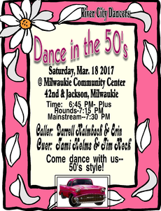 We have started the search for a new Cuer now that Debbie Combs has retired. We welcome Doug hatch as our cuer on 3/4 and Julie Stiers on 3/18. The theme for our 3/18 dance is "Flying high" and we will decorate with Kites and have Irish Sundays for the break. Looking ahead to April, we are hot and heavy into the planning mode for our 59th anniversary. We will be celebrating the anniversary at our April 13th dance and Patty Herman will be our cuer. We are excited to have Roger Putzler join K.C. Curtis to do the calling that night. Plan to join us.