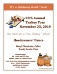 November 23rd is the famous Turkey Toss Dance. Everyone gets a chance to toss a bag of beans and take home a turkey.