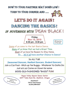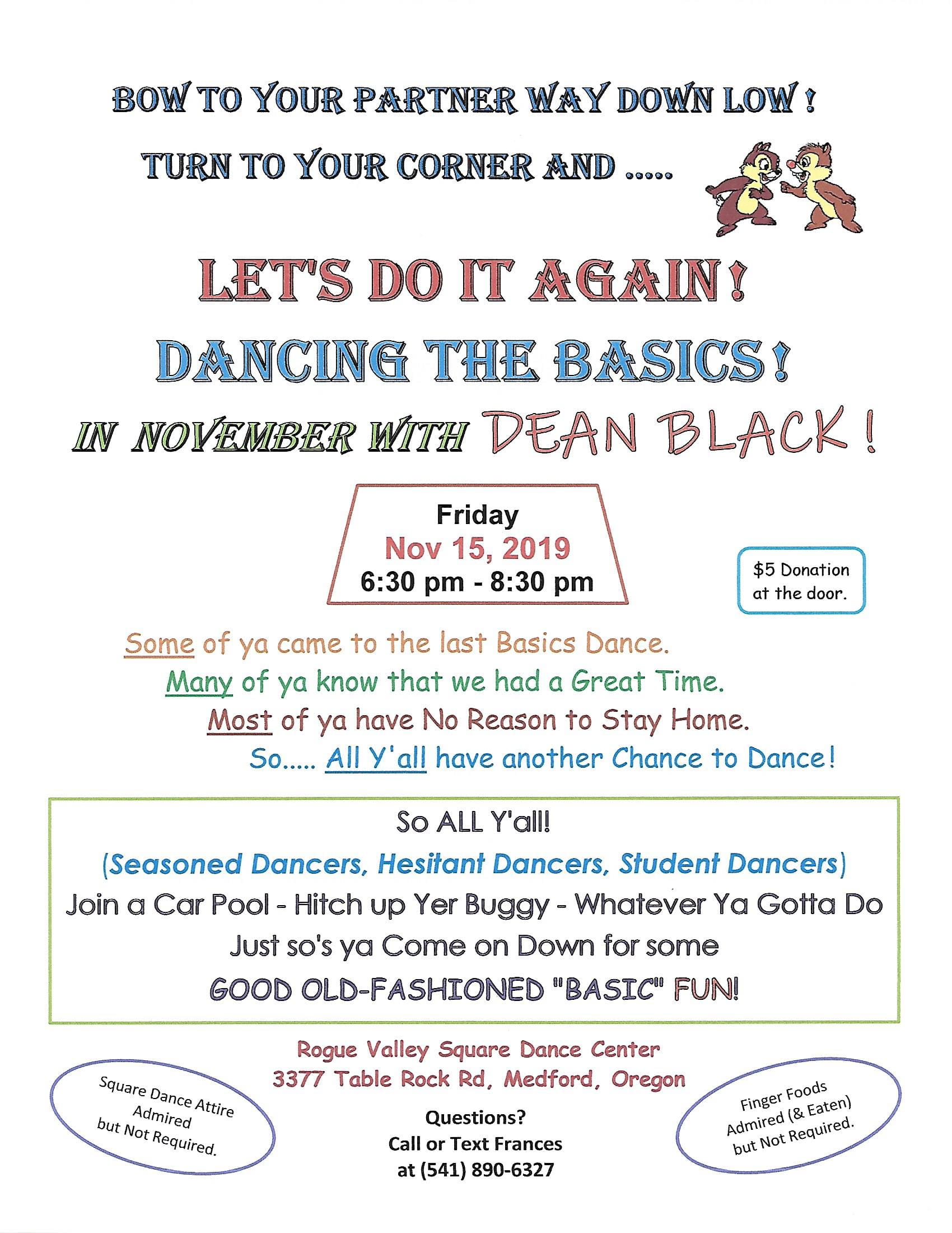On November 15, there will be another "Back to Basics" Dance. Dean Black will be the caller.