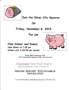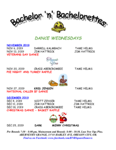 Our featured dances are Nov 13th, our Veteran’s day dance; and Nov 20th, our ever famous Pie Night and Turkey Raffle.