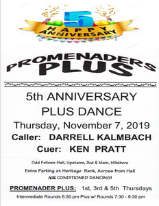 • Thursday, November 7th, 5th Anniversary Plus Dance with Darrell Kalmbach, and Ken Pratt calling and cueing.