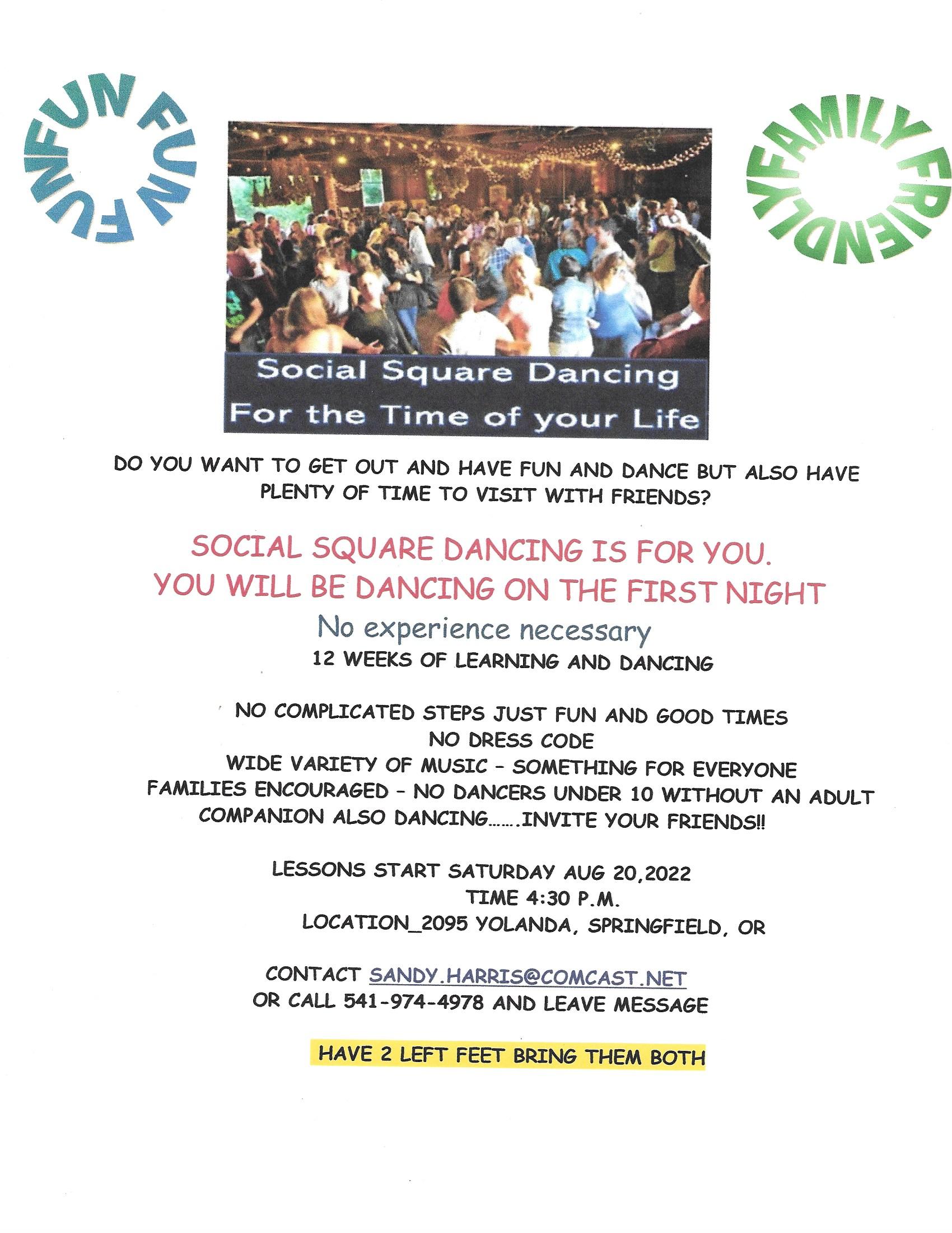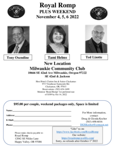 Please contact Marilyn Schmit for questions or info, 503-508-0539, or froggydancer@live.com.