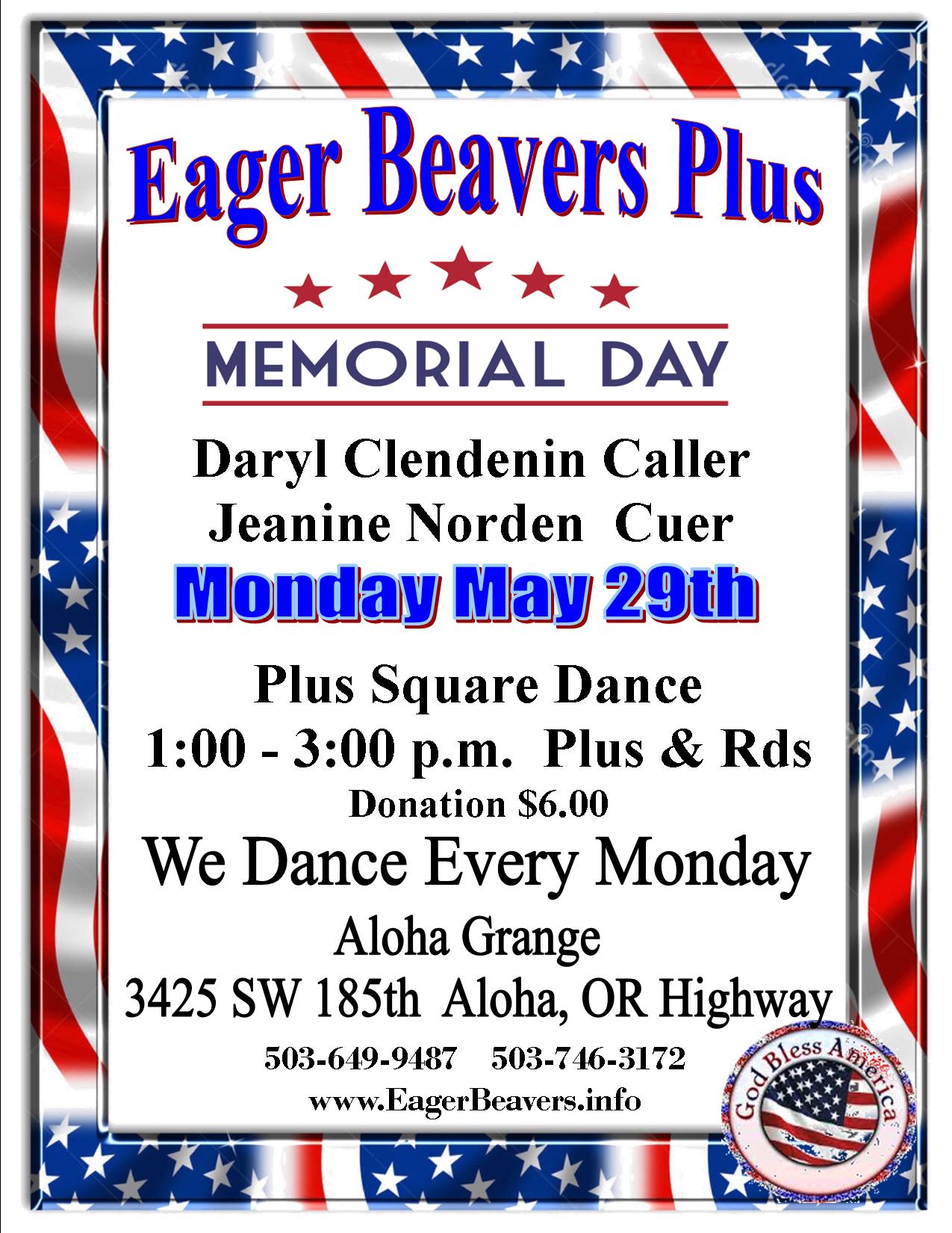 We will return to our usual dance time from 1:00 to 3:00pm on Mondays in May since our lesson series will be completed, with Darrell Kalmbach calling Plus and Jeanine Norden cueing Phase II and III Rounds. Come join us for our Memorial Day Dance on May 29th, a great way to enjoy your day off!