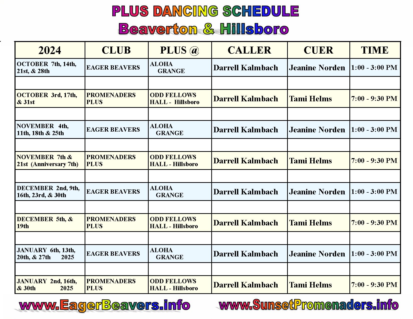 For current dancing information, please see our website at http://EagerBeavers.info. (see link above).