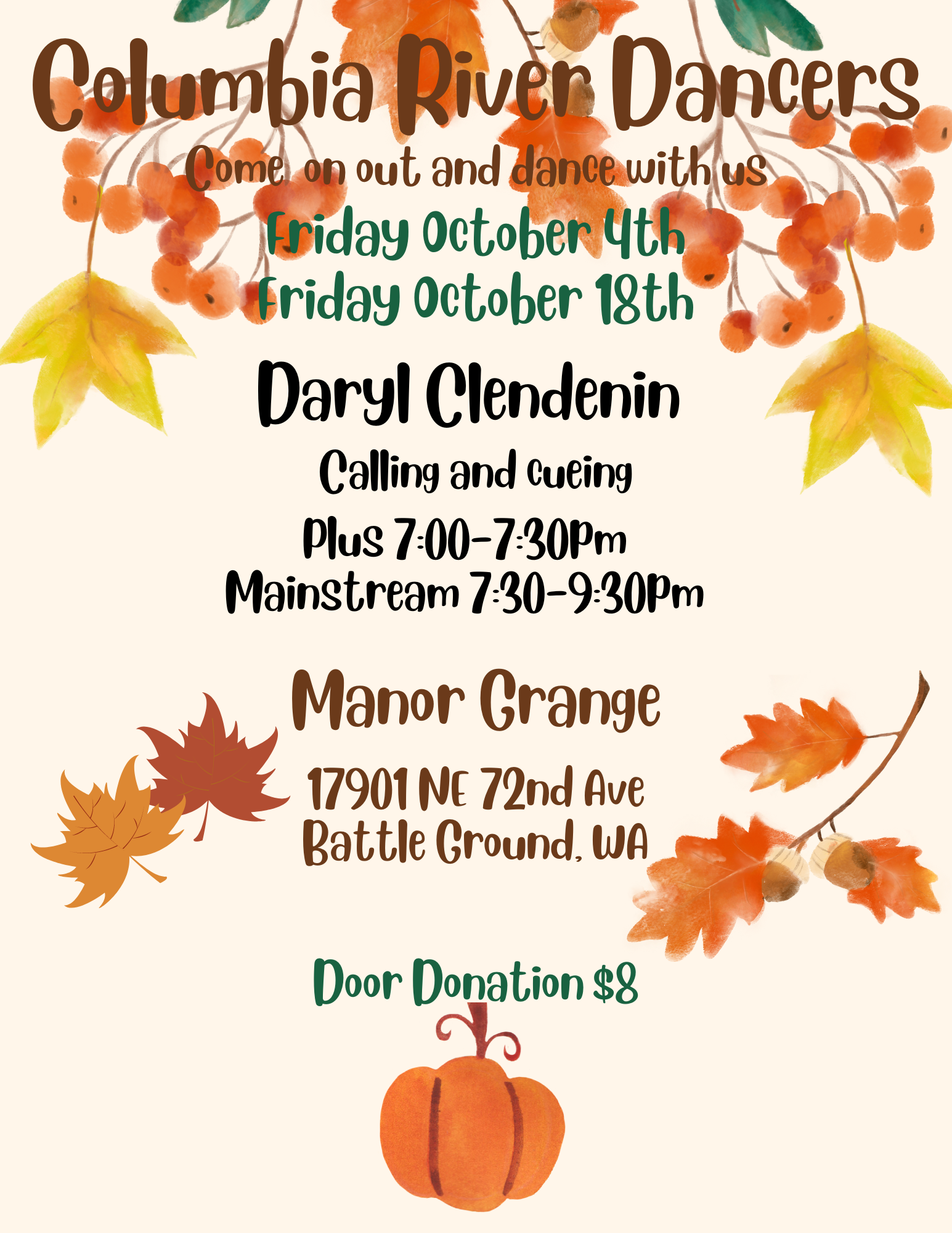 There is a mainstream dance on October 19th with Darrell calling and Tami cuing.