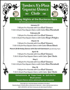 The Hayshakers square dance with Mark Wheeler calling every Sunday at 5 o’clock in the Pacific Grange on Hwy 101 halfway between Seaside and Astoria. It’s easy dancing which everyone can enjoy.