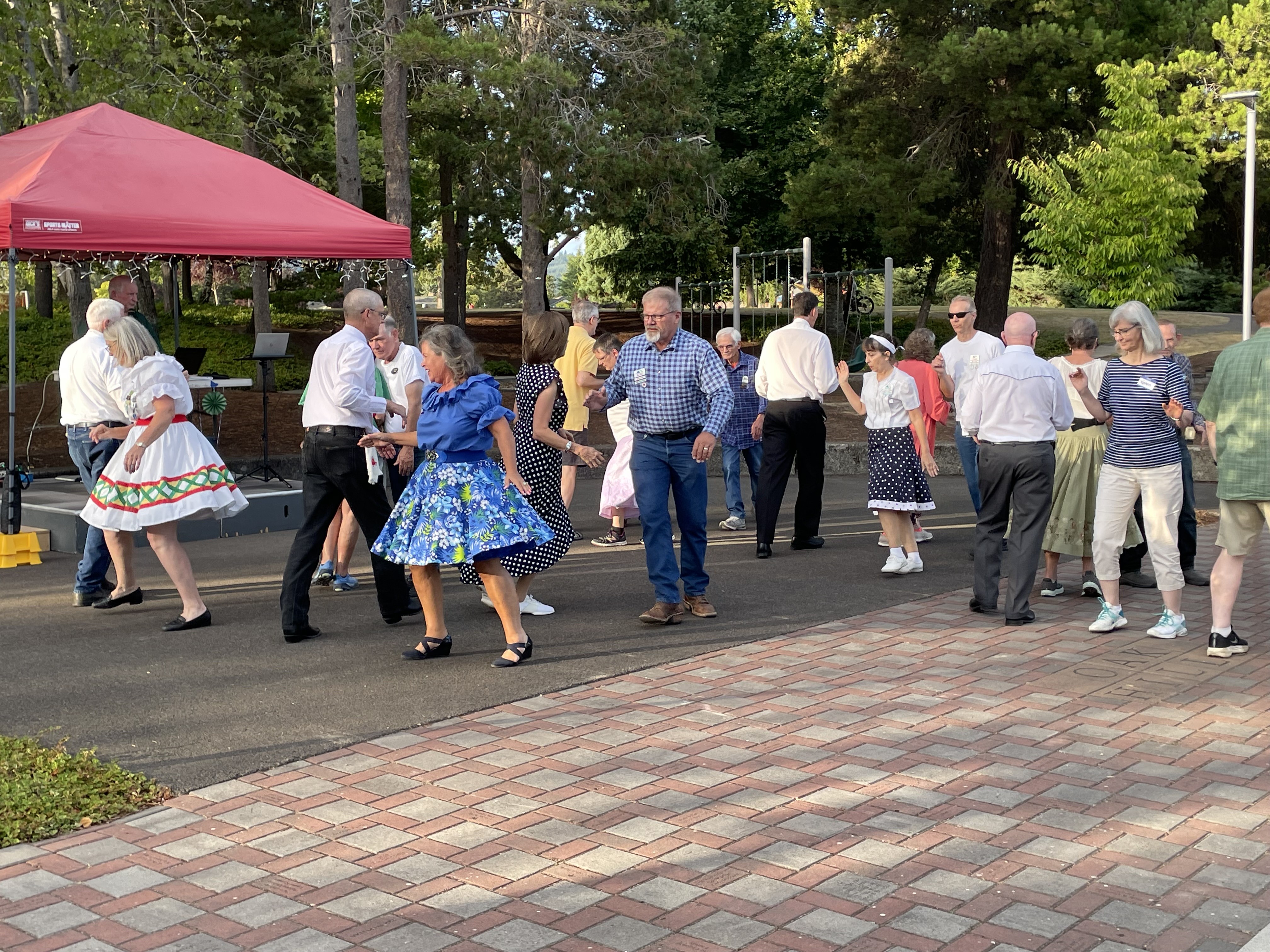 Greetings from R Square D. August was full of summer dances to attend. It also was our big membership drive event: Squirrel Fest in Longview, WA. On August 16th we held a street dance and invited participation from bystanders. This will hopefully spark interest in our wonderful form of folk dancing. Terry Halley was the Caller introducing this style of dance to participants. All seemed to enjoy themselves and we hoped to see many at our lesson startup.