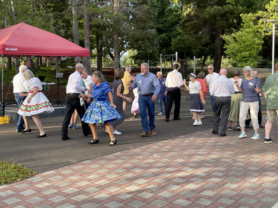 As fall approaches, we look back on a wonderful summer of dancing and special events. On Monday, August 18th, the hot weather subsided in time for the Oak Hills Squares to host a Fabulously Fun evening of Square and Round dancing on the outdoor patio at Oak Hills Rec Center. The 50’s theme included Classic Car night with several cars on display. Many dancers dressed in 50's attire, and decorations in the Community Room enhanced the spirit of the evening. Mark Wheeler called, and Lane Clem cued for close to 40 dancers, including representatives from several clubs. Door prizes, split the pot, and wonderful food added to the experience and everyone who attended went home with a big smile. "It takes a Village” and the OHS Village came out in full force to create an unforgettable evening.