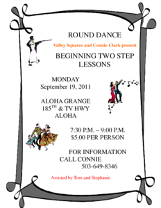 September and school time is fast approaching. Our lessons have started back up on Wednesdays. Plus 7P-8P and Basic/Mainstream 8P-9P. Place is 106 NW 8th St Kelso, WA.