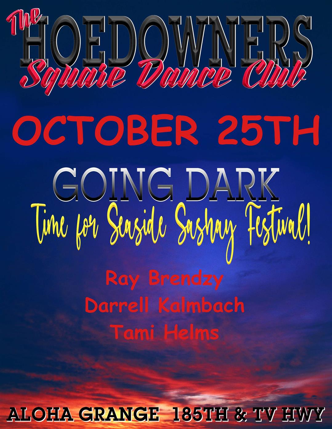 As we look ahead to the October dances, I spy a “Costume Party Dance” on the 11th. We’re all looking forward to October 25th as we go dark for the Seaside Sashay. Hope to see you there!