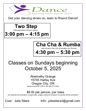 We’re also excited to offer Cha-Cha Round Dance Lessons on Sundays from 2:00 – 3:15 PM.